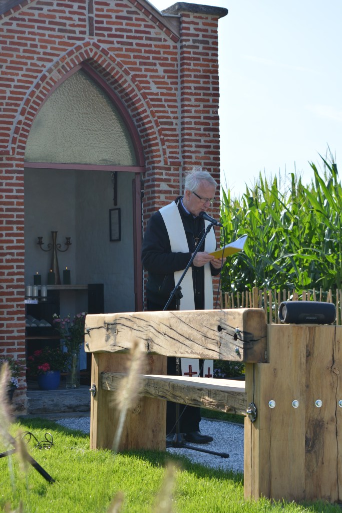 Op zondag 15 september wijdde E.H. De Vidts, onder een stralend zonnetje, de gerestaureerde kapel in de Molenstraat in. Het plechtige gebeuren, muzikaal opgeluisterd door K.H. De Vlaamse Ardennen, kon op heel wat belangstelling rekenen van de Kluisbergenaren. Dank aan initiatiefneemster Anne De Pessemier en iedereen die heeft bijgedragen aan het welslagen van dit mooie project!